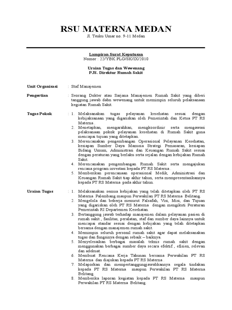 Uraian Tugas Jobdest Di Rs Materna Pdf